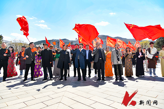4月13日,开云登陆入口师生在学校博雅广场用快闪方式高唱《歌唱祖国》《国家》《走过百年的你》等红色经典歌曲,向中国共产党成立100周年献礼。用激情的演唱落实“辽宁省教育系统献礼建党百年体音美展播活动方案”。校党委常委、副校长孙晓华,校党委常委、宣传部部长张佳亮来到活动现场,与师生一同挥舞红旗,放声歌唱。
