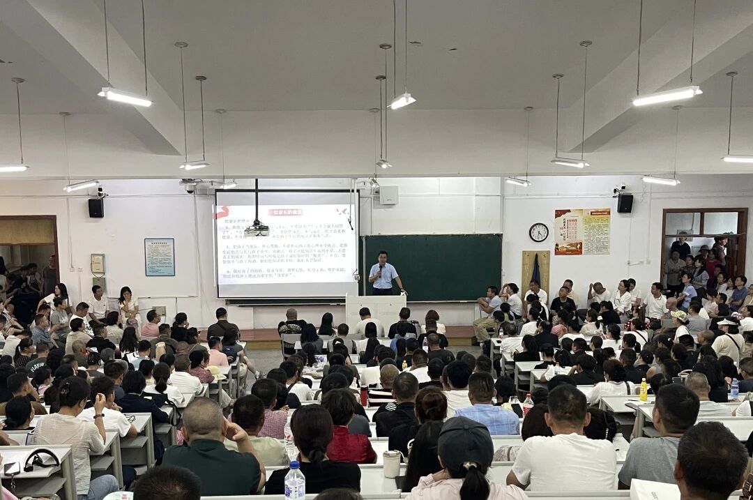 会议上,艾书记首先代表学院欢迎所有新生家长的到来。他详细介绍了学院的发展现状、专业培养体系及其发展方向,全面展示了学院为适应国家新工科建设要求不断调整的教育策略和课程设置。艾书记还强调学院推崇学生全面发展理念,鼓励学生在校期间积极参加各类社团活动,全方位提升自身软实力和交际能力。