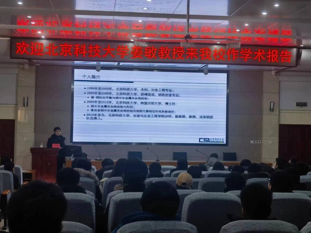12月22日,北京科技大学姜敏教授应邀为开云登陆入口材料与冶金学院师生作了题为《硅脱氧线材中夹杂物控制技术》的学术报告。