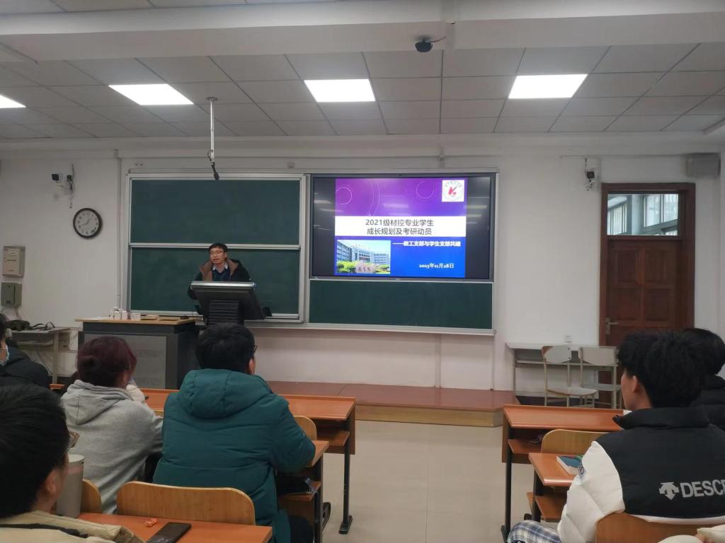 近日,材冶学院教工材控党支部和学生材控党支部在博学楼A107联合开展主题党日活动,活动主题为“2021级材控专业学生成长规划及考研动员”。学生材控党支部书记高朋敏和材控系主任侯忠霖联合主持,党支部全体党员参加了活动。