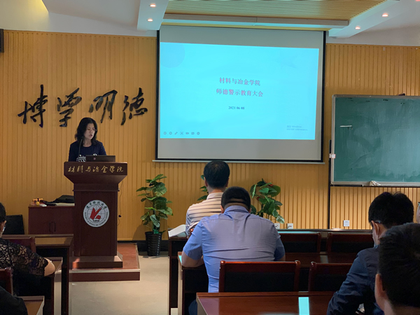 为深入贯彻落实《教育部关于在教育系统开展师德专题教育的通知》和学校2021年全面从严治党会议精神,全面加强党风廉政建设,强化教师的法治和纪律教育,6月8日下午,材冶学院召开了师德警示教育大会。