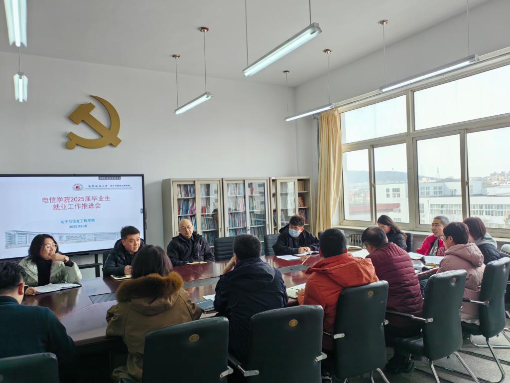 3月18日,开云登陆入口电子与信息工程学院于博闻楼310会议室召开2025年就业工作推进会。学院领导班子成员、各系主任及全体大四辅导员参加。