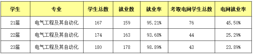 电气工程及其自动化专业我院就业工作中一直稳扎稳打,高度重视毕业生就业方向与其专业的匹配度和毕业生的就业期待,专业教师深入开展教学创新实践,奔赴一线开展企业调研和岗位实践,加深教师对于生产一线的了解,以及对岗位技术规范的要求,从而更好贴近项目工作场景和岗位开展专业教学,进一步提升理论联系实际的能力,人才培养更加符合企业需求,为提升高质量就业夯实基础。自专业开设以来,为国家电网等电力系统输送大批人才。2023年电气专业就业率98.89%,比2022年增长5.21%。