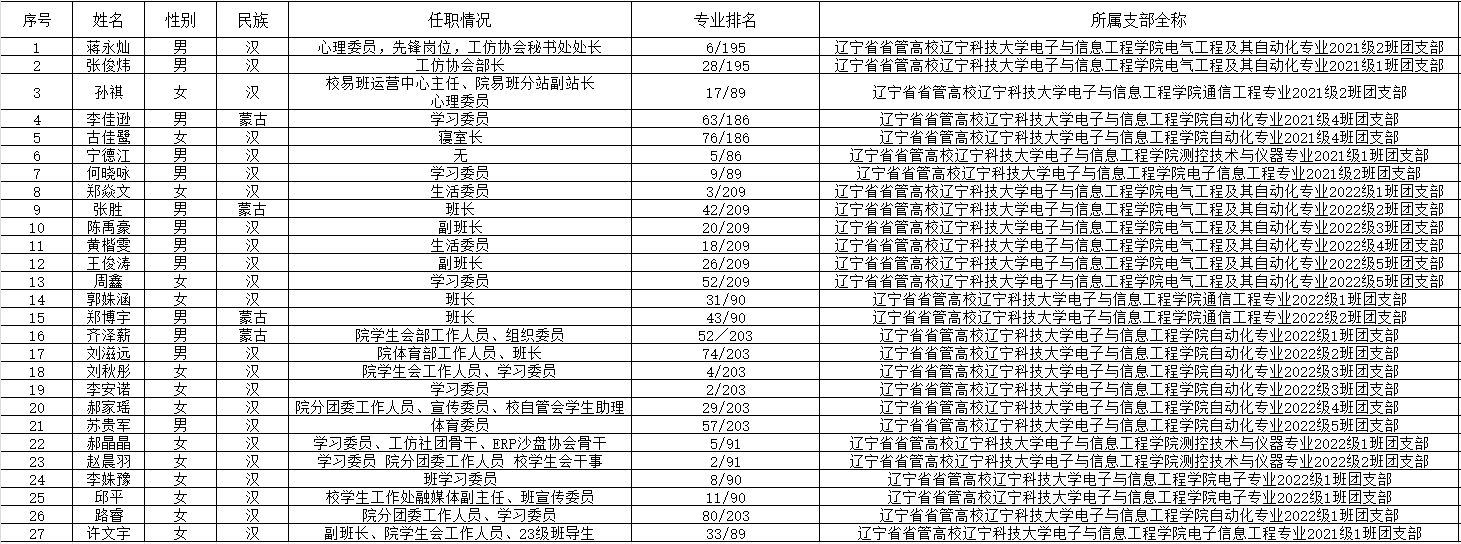 经学院团委培养审查,拟接收蒋永灿等二十七名同志为共青团员,现将具体情况公示如下。