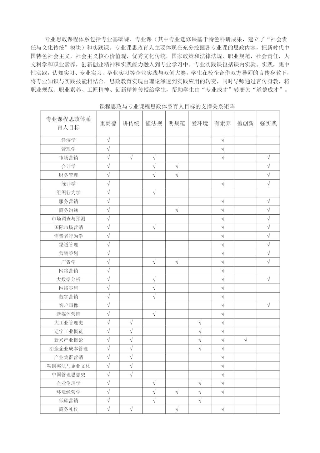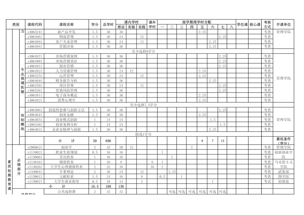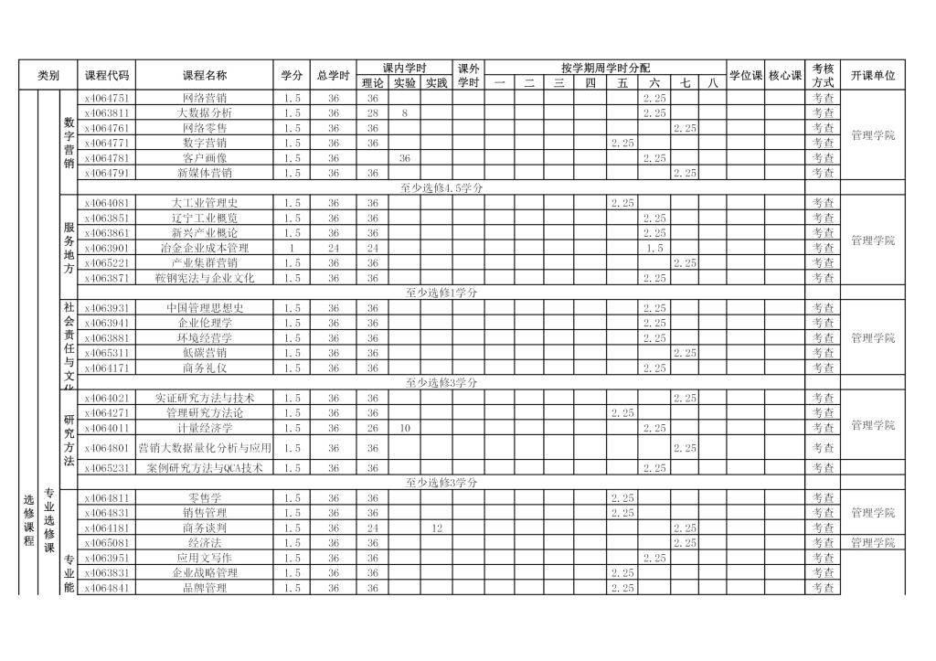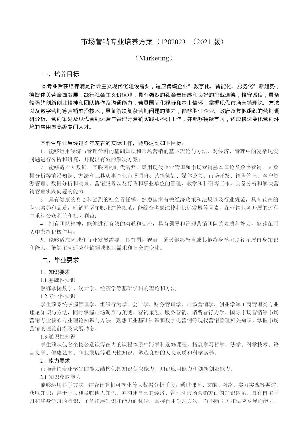 市场营销专业培养方案