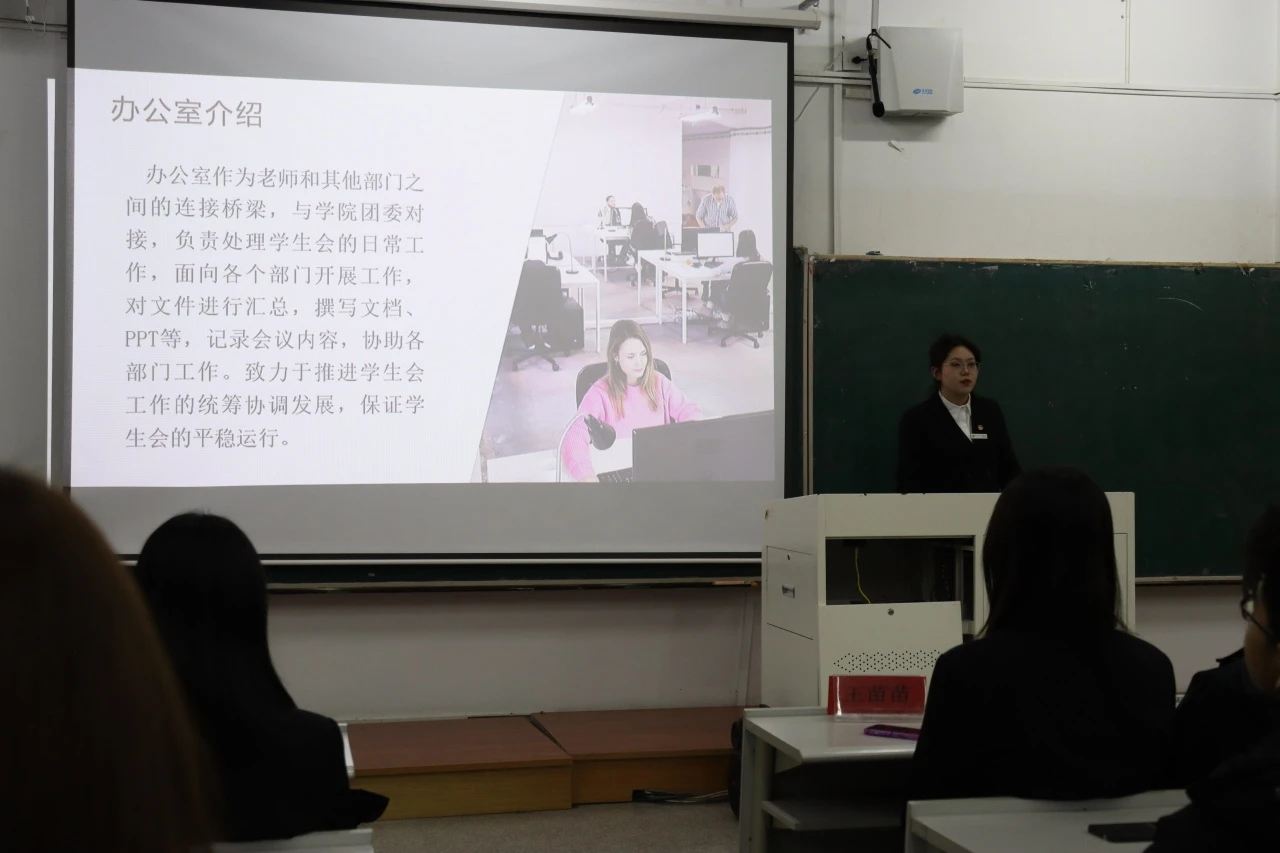 随后,各部门负责人依次上台,详细介绍了各部门的职能、工作内容及往年活动。通过生动的讲解和丰富的案例展示,新生们对学院学生组织有了更全面的认识。现场气氛热烈,新生们纷纷举手提问,表现出极高的参与热情。