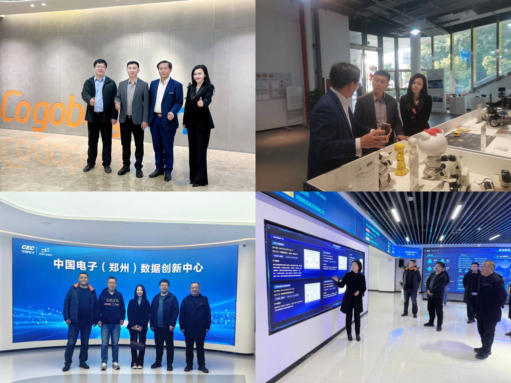 在郑州,学院领导与研究生导师一起走访MBA校友,参访校友所在企业,先后在中国电子(郑州)数据创新中心、郑州数据交易中心进行参观交流。在企业展厅,相关负责人详细介绍了企业发展状况、数据元件的生产制作、数据交易流程及交易中心运行情况,并对大数据相关技术在交通、金融、农业等场景的应用进行了具体讲解;学院一行还详细了解了企业用人需求情况,邀请企业来我校选拔优秀毕业生。