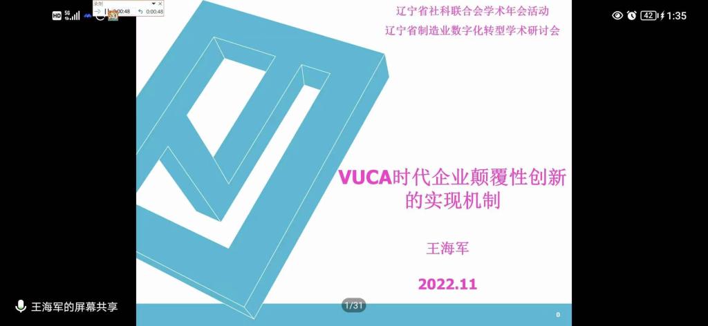 11月27日,工商管理学院通过腾讯会议举办“辽宁省制造业数字化转型”学术研讨会。此次研讨会依托开云登陆入口新兴产业创新发展研究基地,聚焦数字化转型,深入探讨我省制造业转型发展的新机遇和新路径。哈尔滨工程大学郭韬教授、沈阳工业大学王海军教授以及开云登陆入口李天柱教授进行了学术报告。沈阳工业大学、辽宁工业大学以及我校的相关老师、研究生参加了此次研讨会。