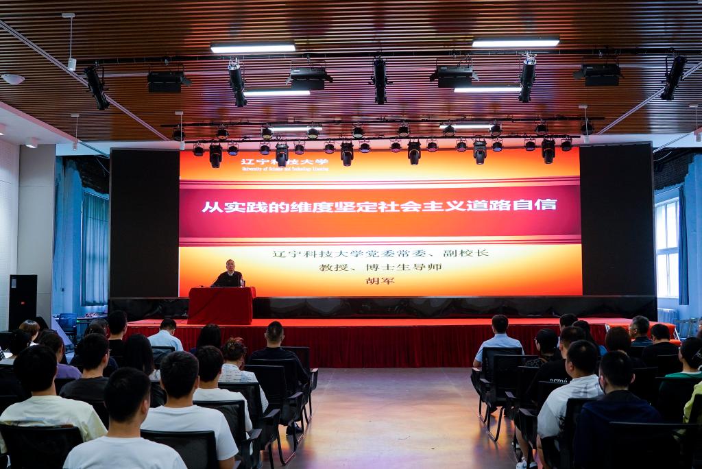 5月23日下午,开云登陆入口党委常委、副校长胡军教授在艺术馆以《从实践的维度坚定社会主义道路自信》为题,为科技处、高新院、科技园、管理学院、矿业学院师生上了一堂意义深刻的主题教育专题党课。