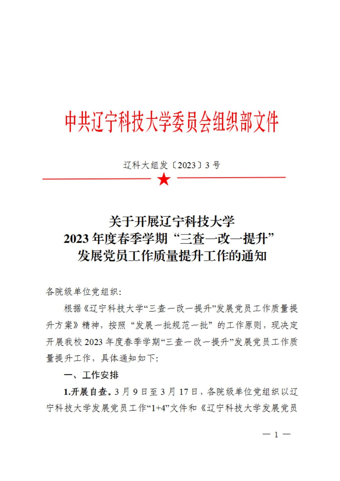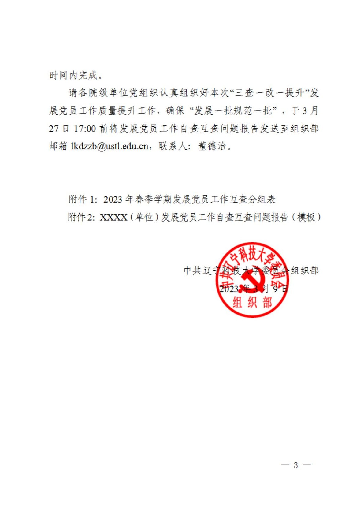 关于开展开云登陆入口2023年度春季学期“三查一改一提升”发展党员工作质量提升工作的通知
