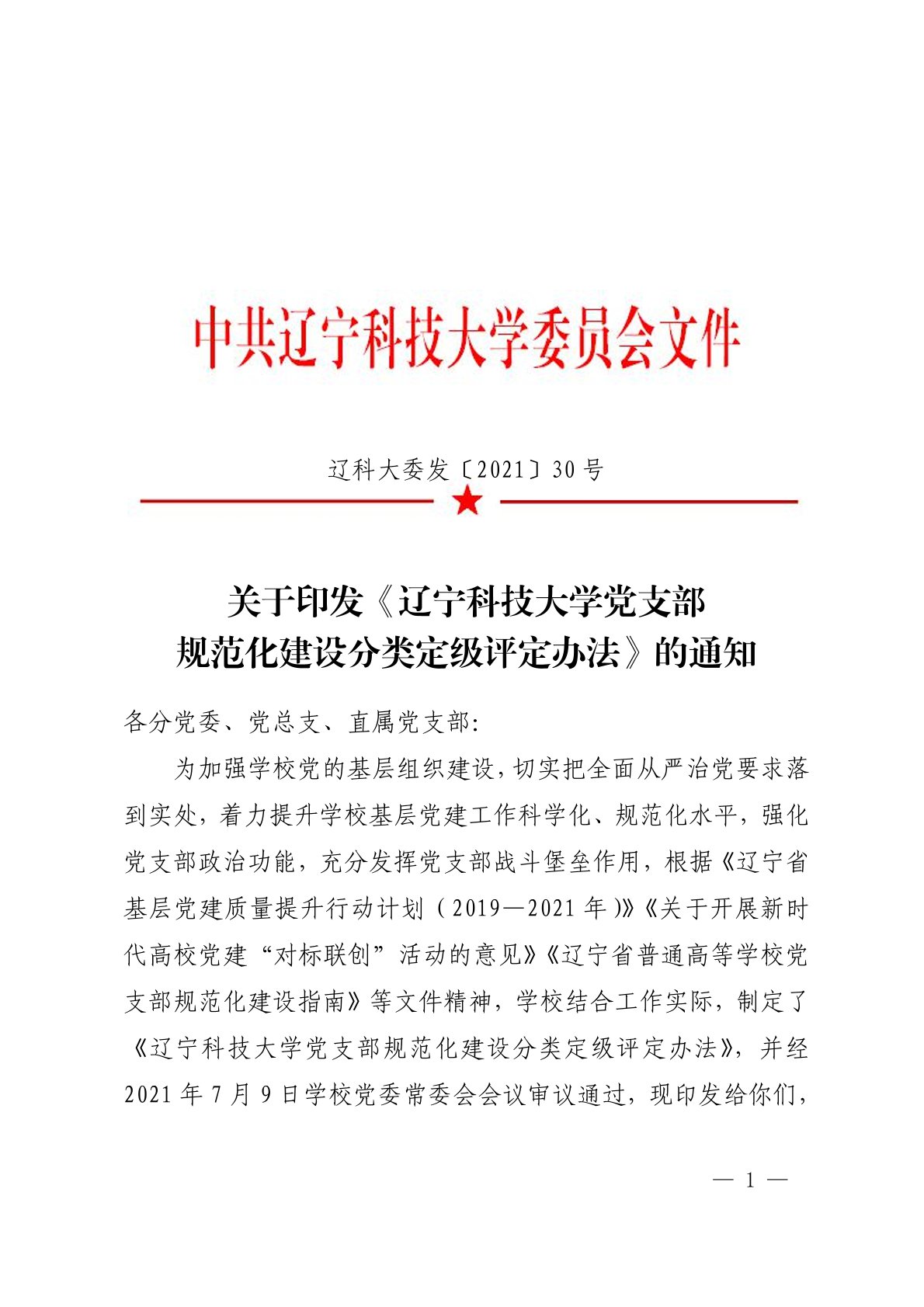关于印发《开云登陆入口党支部规范化建设分类定级评定办法》的通知