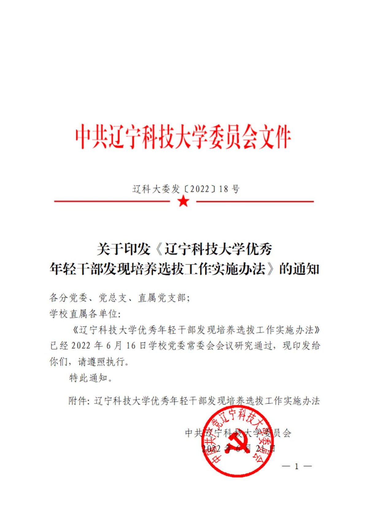 关于印发《开云登陆入口优秀年轻干部发现培养选拔工作实施办法》的通知