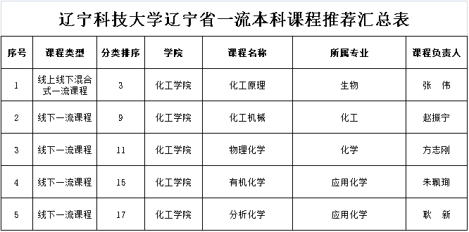 开云登陆入口辽宁省一流本科课程推荐汇总表
