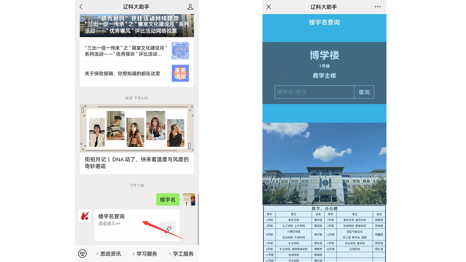 3.输入楼宇名/楼号后,点击查询。
