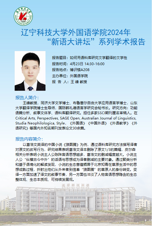 学术预告:如何用语料库研究文学翻译的文学性
