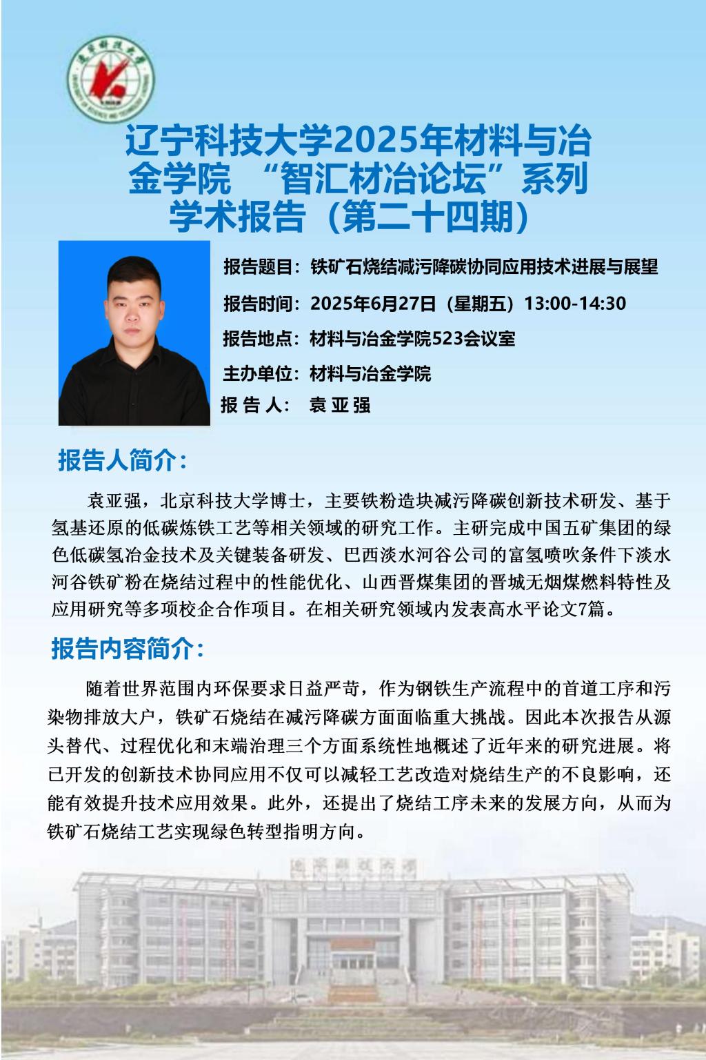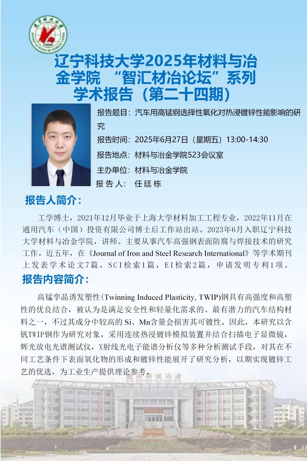 开云登陆入口2025年材料与冶金学院 “智汇材冶论坛”系列学术报告 (第二十四期)