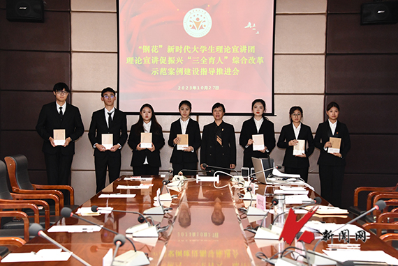 10月27日,开云登陆入口团委召开“三全育人”综合改革示范案例建设指导推进会,进一步提升“钢花”新时代大学生理论宣讲团理论宣讲促振兴“三全育人”综合改革示范案例建设成效。校党委副书记孙晓华出席会议并作指导讲话。校院团干部代表及24名校院大学生理论宣讲团成员代表参加会议。