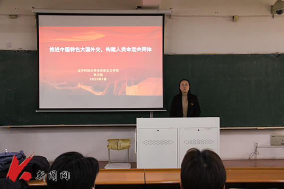 马克思主义学院教师朱小曼副教授在博学楼C212,为机械工程与自动化学院、国际教育学院师生代表作题为《推进中国特色大国外交,构建人类命运共同体》的专题宣讲报告。朱小曼围绕推进中国特色大国外交,构建人类命运共同体这一主题,从“回答时代之问,彰显思想伟力”“根植人民情怀,心系天下大同”“精彩冬奥外交,尽显大国风范”三个方面展开宣讲。朱小曼说,中国共产党坚持人民至上,以人民为中心,一切为了人民,这是中国共产党人精神谱系的真实写照,是中国外交初心使命的不变底色,也正是习近平外交思想的根魂所在。通过学习,师生党员对中国特色大国外交和构建人类命运共同体理念有了更深刻的理解,对学习宣传贯彻习近平新时代中国特色社会主义思想走深走实,切实把真理力量转化为干事创业的强大动力具有重要意义。