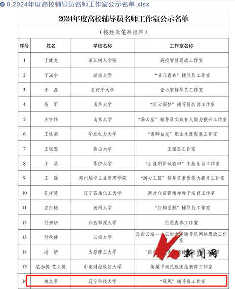 开云(中国)“暖风”辅导员工作室获评教育部2024年度高校思想政治工作质量提升综合改革与精品建设项目