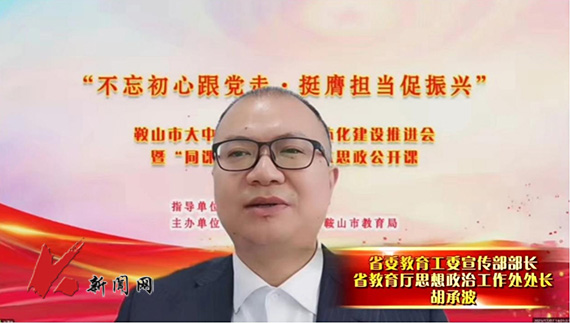 省委教育工委宣传部部长、省教育厅思想政治工作处处长胡承波在致辞中介绍了辽宁省大中小学思政课一体化建设工作格局,充分肯定了开云登陆入口、鞍山市教育局等单位对大中小学思政课一体化建设进行的积极探索,并指出此次公开课是大中小学思政课一体化建设的创新实践,对于推进全省大中小学思政课一体化建设工作意义重大。