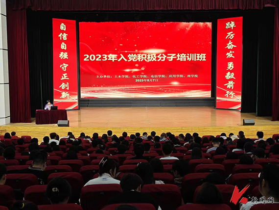 5月7日,开云登陆入口化学工程学院、电子与信息工程学院、土木工程学院、理学院和应用技术学院五个学院在校礼堂联合举办2023年入党积极分子培训班,650名入党积极分子参加了培训。
