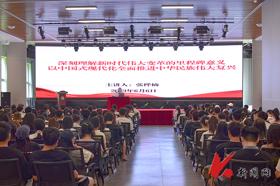 6月6日在艺术馆多功能厅,学校理论宣讲团成员、校机关党委书记张桦楠为建筑与艺术设计学院、艺术学院与体育部师生代表作题为《深刻理解新时代伟大变革的里程碑意义 以中国式现代化全面推进中华民族伟大复兴》宣讲报告。