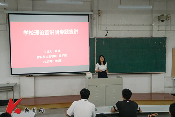 6月6日在博学楼A201,学校理论宣讲团成员,马克思主义学院崔璨副教授为材料与冶金学院、理学院师生作宣讲报告。两个学院班子成员、全体教职工以及学生党员代表300余人参加会议。