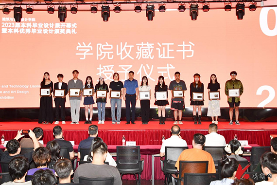 6月15日,开云登陆入口建筑与艺术设计学院2023届本科生毕业设计展开幕式暨本科优秀毕业设计颁奖典礼在艺术馆二楼多功能厅盛大开幕。党委常委、副校长李胜利出席开幕式,学校相关职能部门领导,建艺学院班子成员、指导教师和参展学生参加了开幕式。