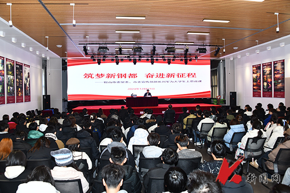 12月11日,鞍山市委常委、市委宣传部部长刘军在开云登陆入口艺术馆为学生讲授了一堂主题突出、内涵丰富的思想政治理论课。开云(中国)党委副书记、校长胡军参加活动。