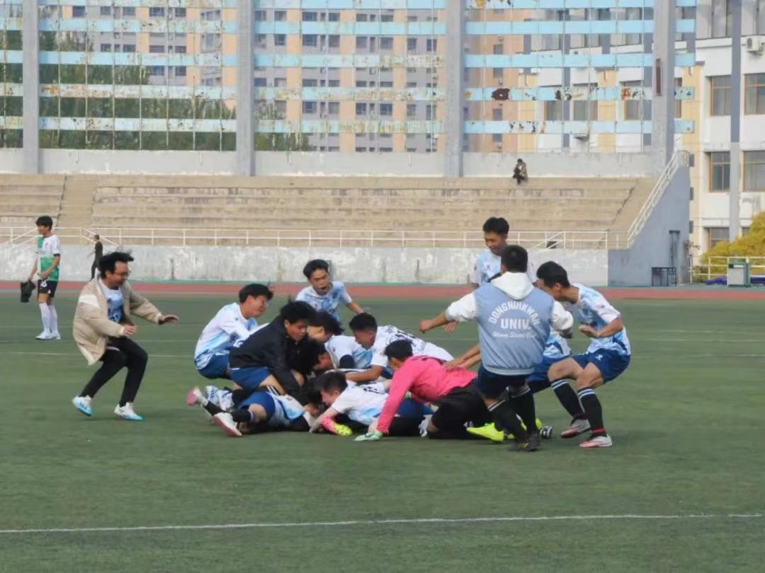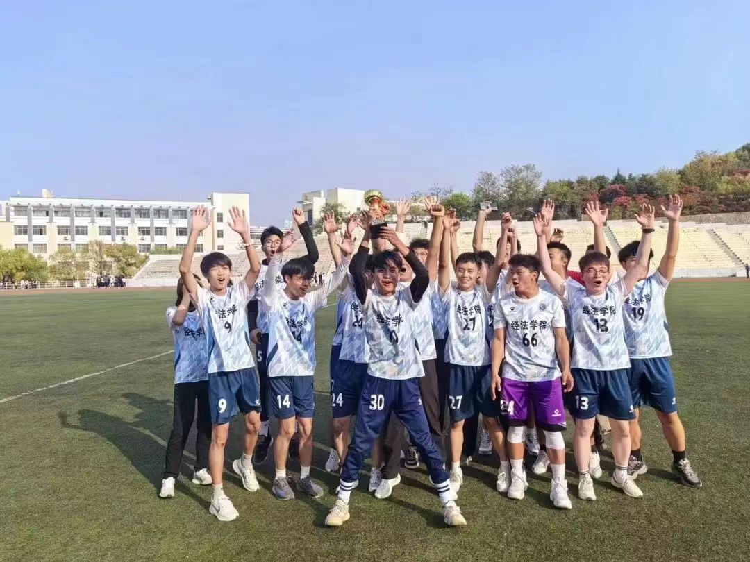 人心齐,泰山移。据悉,本次比赛是经法学院近年来在此项赛事上取得的最好成绩,季军的取得离不开足球队员们的拼搏与努力,同时也离不开学院的支持。在整个足球赛期间,经法学院党委书记赵智博、党委副书记张国华、团委副书记张鹏飞老师多次来到现场,为运动员们加油打气,经法学院团委、学生会全体成员与2023级同学来到主体为经法学院加油,为经法足球队欢呼。