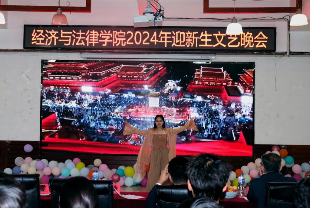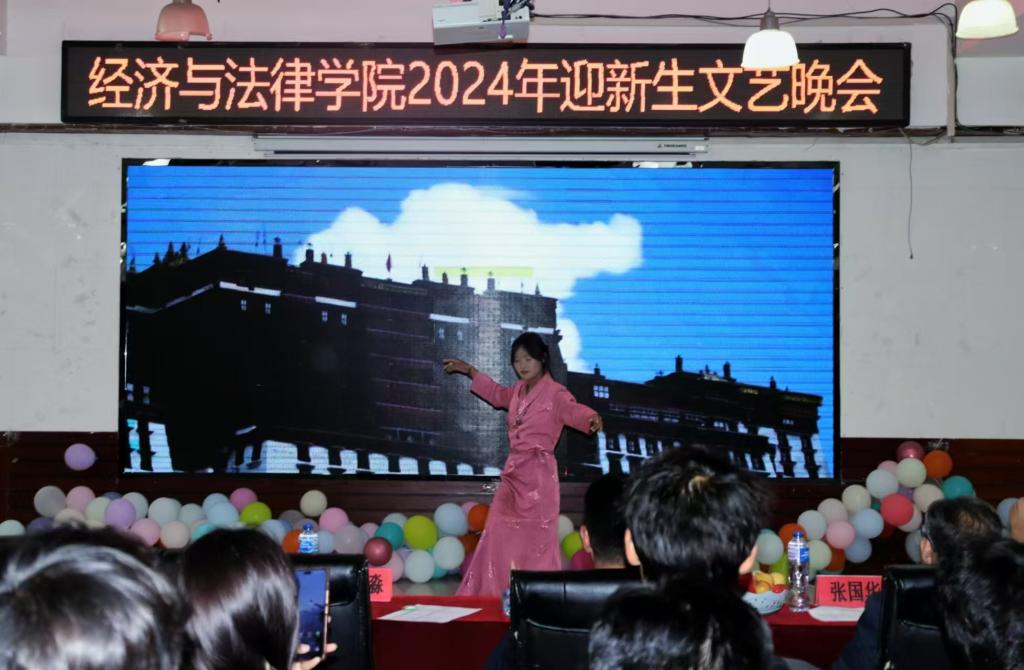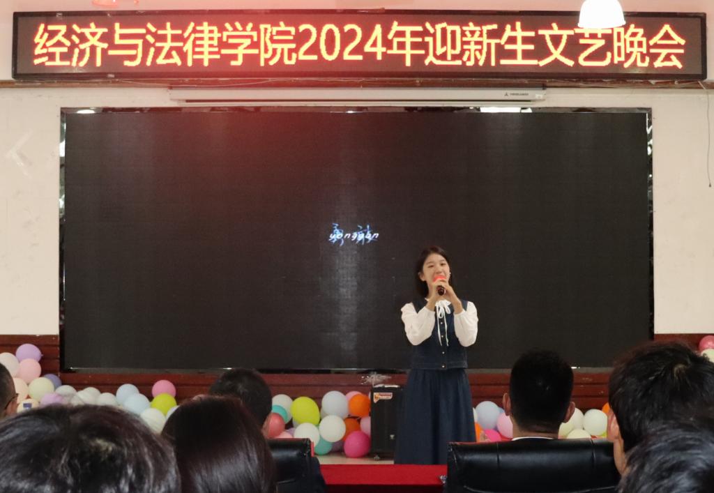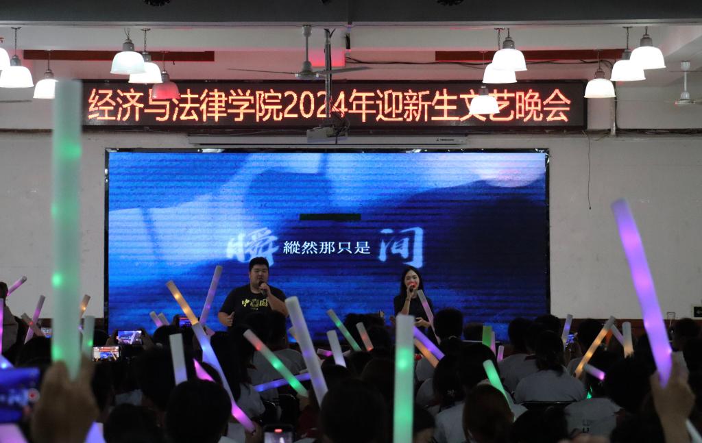 共赏中秋月,人间话团圆。9月17日晚,经法学院于明德楼大学生活动中心举办了以“中秋同国庆 师生共团圆”为主题的迎新生文艺晚会。学院党政领导及辅导员、团学骨干、新生班导生以及全体2024级新生近300人观看了本场演出。
