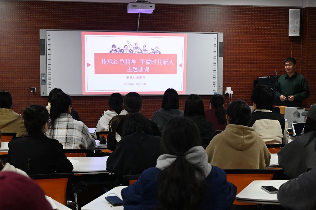 学院组织员王艺霏作党的二十届三中全会精神的主题宣讲。她为同学们介绍了全会精神内涵及全会对全面深化改革做出的重要部署。她强调“贯彻落实行动是检验学习成效的重要标准”这一关键观点,同时引导同学们把学习成果转化为具体行动,以更加坚定的决心、更加务实的举措,把全会精神落到实处,为实现中华民族伟大复兴的中国梦而努力奋斗。