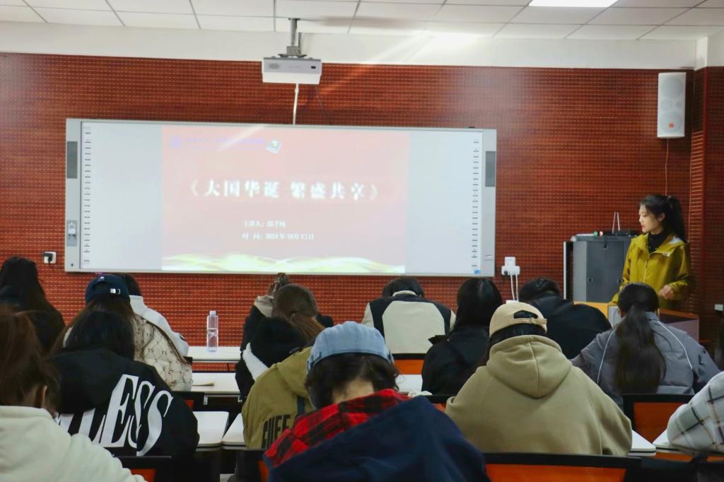 学院团委学生副书记、“青年·说”大学生理论宣讲团成员邱千纯为学员们带来题为“大国华诞,繁盛共享”的主题宣讲。她带领大家回顾了伟大祖国从苦难走向辉煌的历史进程,中华民族在民族精神的支撑下虽历经沧桑巨变,但始终坚韧不拔、自强不息,创造了举世瞩目的辉煌成就。她强调,新时代的大学生有责任、有义务去传承和弘扬中华文化,让其在新的时代背景下焕发出更加绚丽的光彩。
