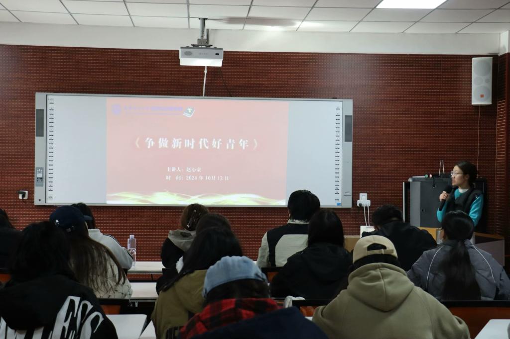 学院学生会执行主席、“青年·说”大学生理论宣讲团成员赵心豪为学员们带来题为“争做新时代好青年”的主题宣讲。她围绕培养理想追求、彰显担当精神、发扬吃苦耐劳品质、坚持努力奋斗四个方面,向同学们介绍了新时代青年的含义及青年对国家发展的积极影响。同时,她以第28届中国青年五四奖章获得者王传超等当代杰出青年的奋斗历程为例,鼓励同学们以此为榜样,坚守理想、笃行致远,以强烈的进取心、责任心扛起时代赋予的使命,在实践中不断探索创新,勇做走在时代前列的奋进者、开拓者、奉献者。