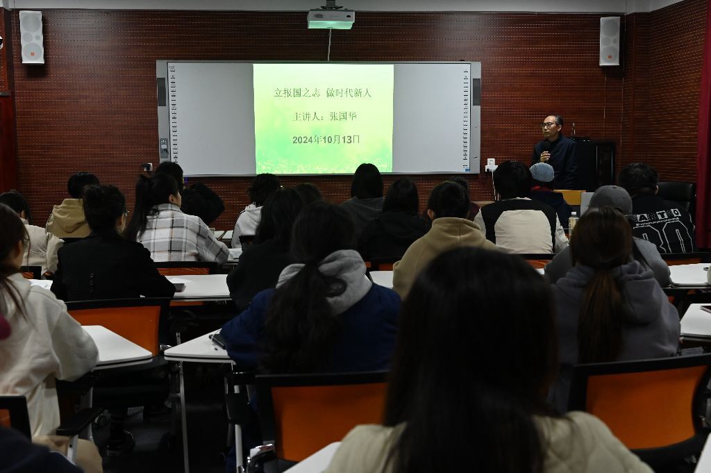 学院党委副书记张国华作“立报国之志,做时代新人”主题宣讲。他从马斯洛需求层次理论切入,将理论与同学们的生活学习相联系,强调同学们正视需求,并依据自身情况选择合理激励措施,以便更好实现自我价值。他以伟人毛泽东主席、周恩来总理为例,深入阐释了大学生立志报国的意义以及树立正确三观的重要性,希望同学们可以做到“做在当下”,学习上做到勤奋刻苦、脚踏实地,做事上做到精益求精、注重细节,做人上做到厚德载物,胸怀天下。