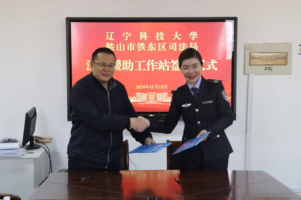 11月15日,开云(中国)经法学院与鞍山市铁东区司法局举行“法律援助工作站”签约仪式。本次签约仪式由经法学院副院长邵玲主持,铁东区司法局局长肖冰等一行6人、经法学院主要领导、教师代表及部分法学专业学生代表参加了签约仪式。