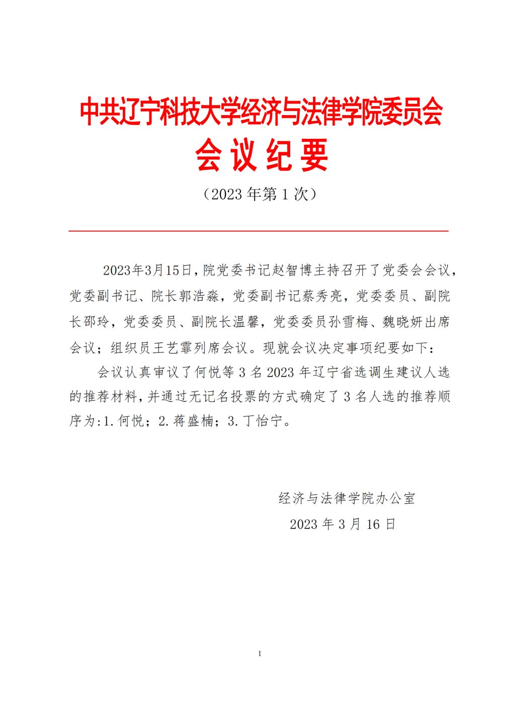 中共开云登陆入口经济与法律学院委员会会议纪要(2023年第1次)