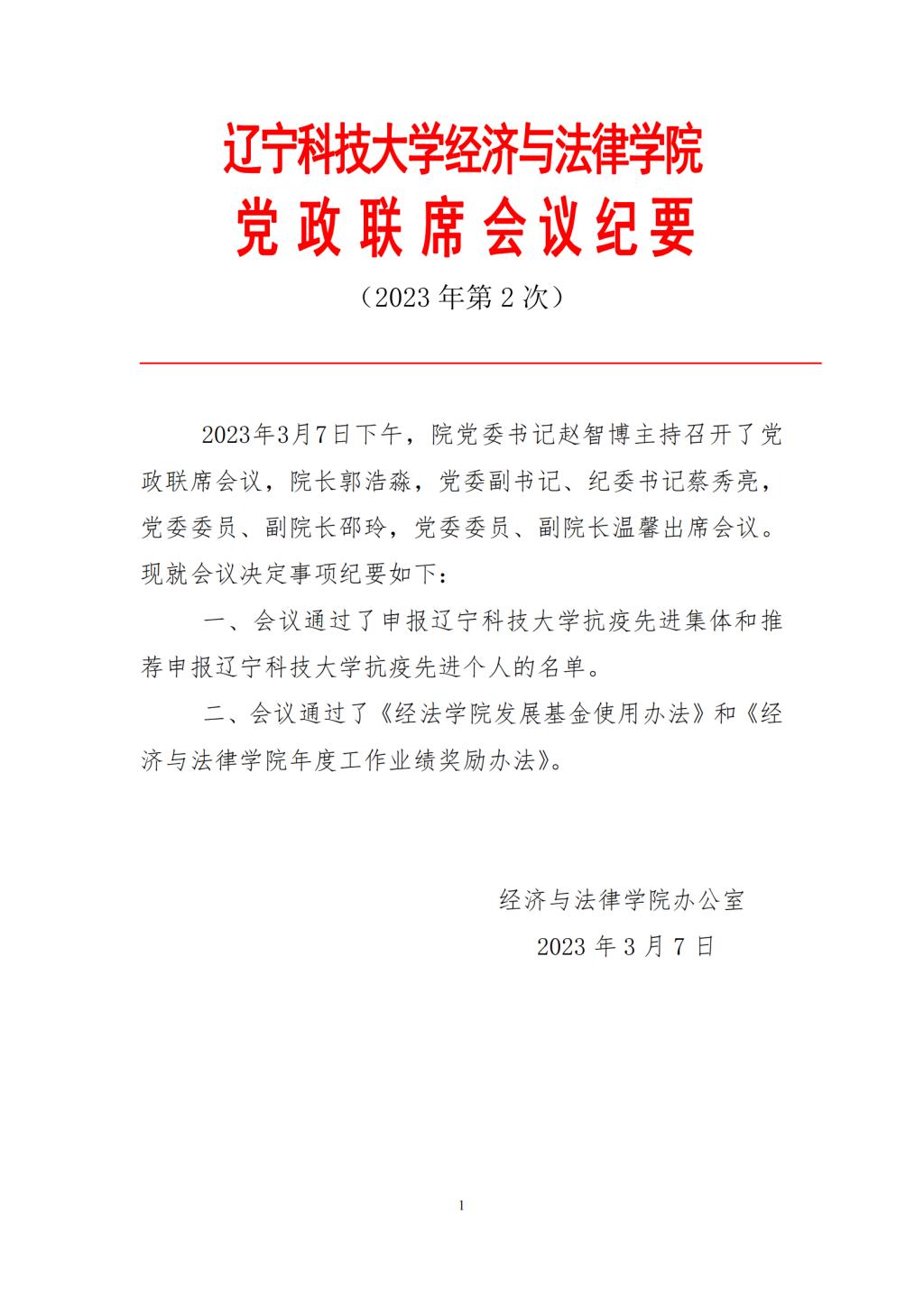 开云登陆入口经济与法律学院党政联席会会议纪要(2023年第2次)