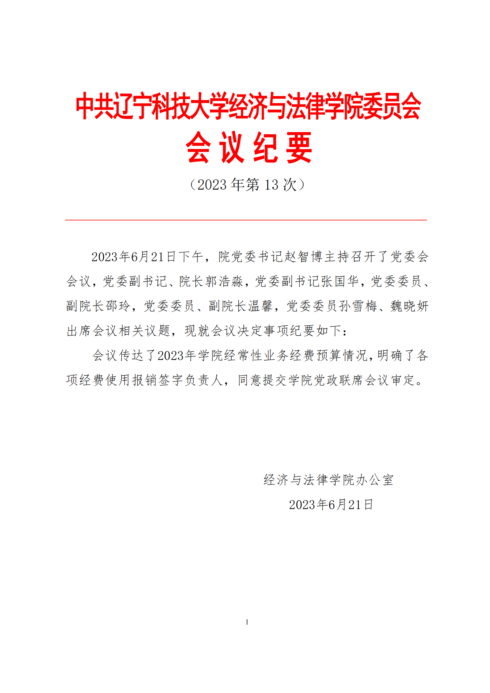中共开云登陆入口经济与法律学院委员会会议纪要(2023年第13次)