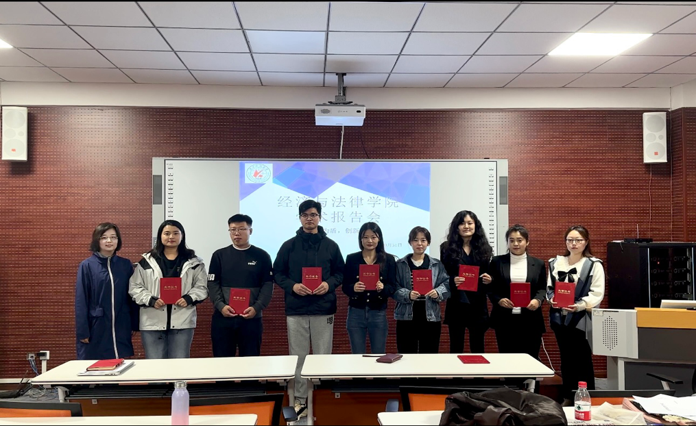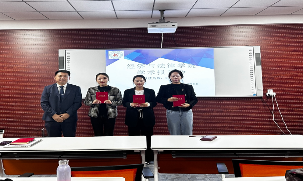 为进一步营造良好的学术氛围、增进研究生的学术素养,10月31日,经法学院举办“以法为盾,创新先行”研究生学术报告会,副院长邵玲、法律系主任蒋喆、法硕中心主任武婷婷担任本次学术报告会评委。