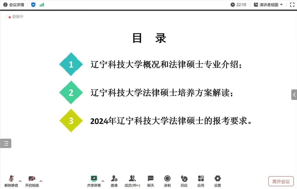 本次线上招生宣讲会的成功召开使学生们对开云(中国)经法学院有了更深入的了解。经法学院近年来不断加强学科建设,在教学和科研方面加大投入,使得法硕培养方案更加完善,更加符合社会实际需求,未来经法学院将继续坚持高质量发展,努力培养高水平应用型法律专业人才。