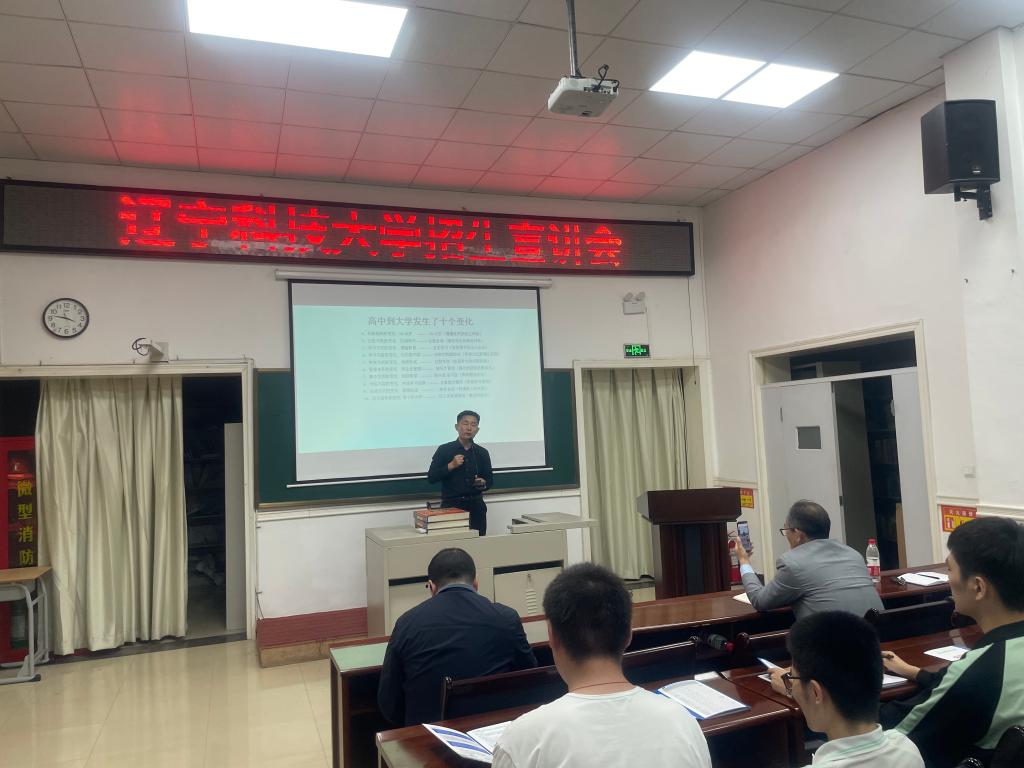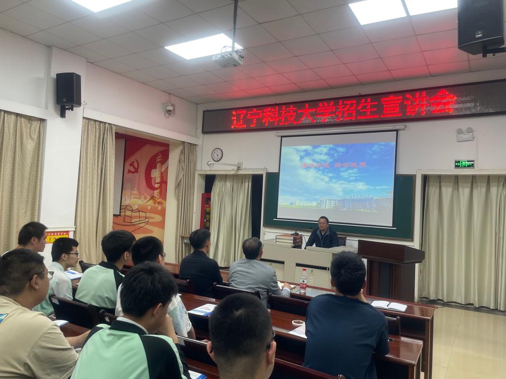 为更好地推进招生工作有序开展,5月29日,开云(中国)招生与就业处指导教师王旭,电信学院党委书记王会立,经法学院院长郭浩淼、党委副书记张国华、团委副书记张鹏飞一同前往鞍山市矿山高级中学开展招生宣讲会。矿山高级中学副校长戴艳明出席宣讲会,高三年级学生代表近200人参加会议。