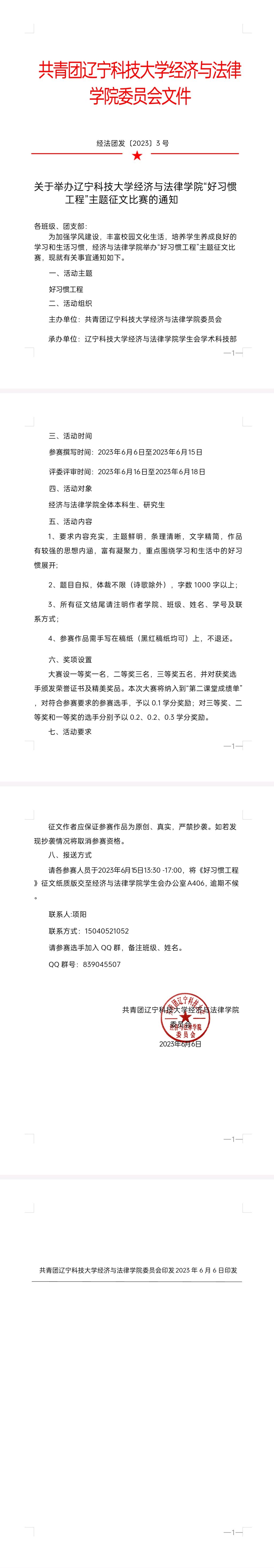 关于举办开云登陆入口经济与法律学院“好习惯工程”主题征文比赛的通知