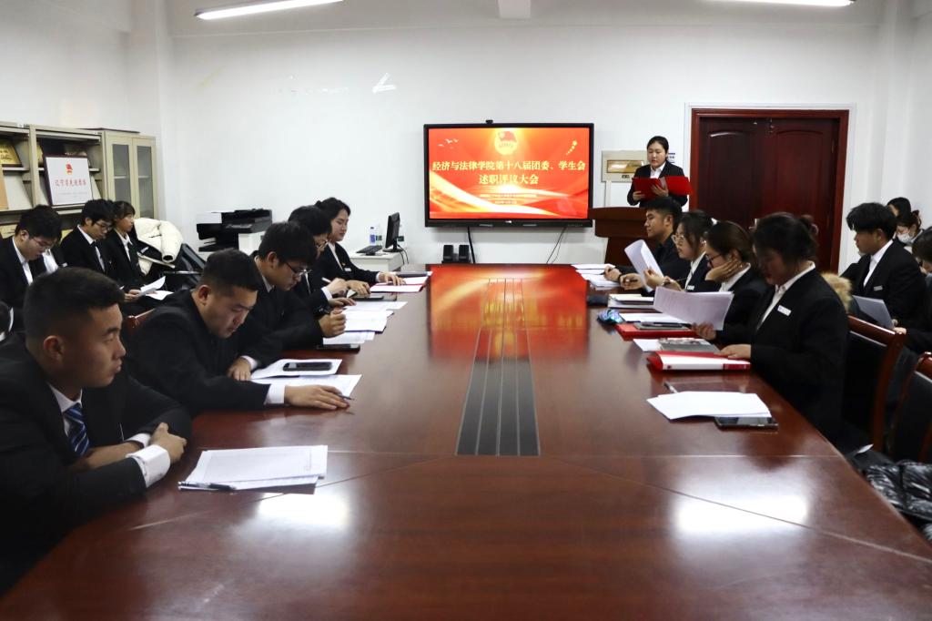 12月12日下午,经法学院于博识楼A305召开第十八届团委、学生会述职评议会,学院团委副书记张鹏飞及全体团学骨干参加了本次会议。会议由学生会执行主席兼办公室负责人吴雨纯主持。