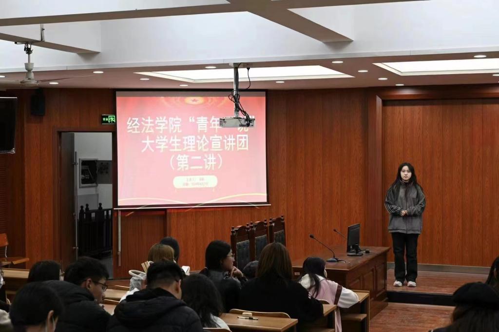 4月2日,经法学院于明德楼A214开展“青年·说”大学生理论宣讲,此次宣讲由经法学院宣讲团成员、分团委社团与实践指导中心干事宋昕担任主讲人,经法学院团学骨干共计70人参加了此次活动。