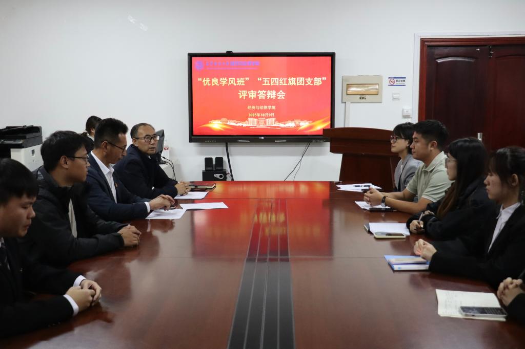 为进一步深化班级学风建设,激发基层团组织活力,10月9日,经济与法律学院在博识楼A305举办优良学风班和五四红旗团支部评比答辩会。学院党委书记赵智博、党委副书记张国华、学生工作办公室主任李路云、团委书记张鹏飞,以及学生代表和各团支部代表参加了本次活动。