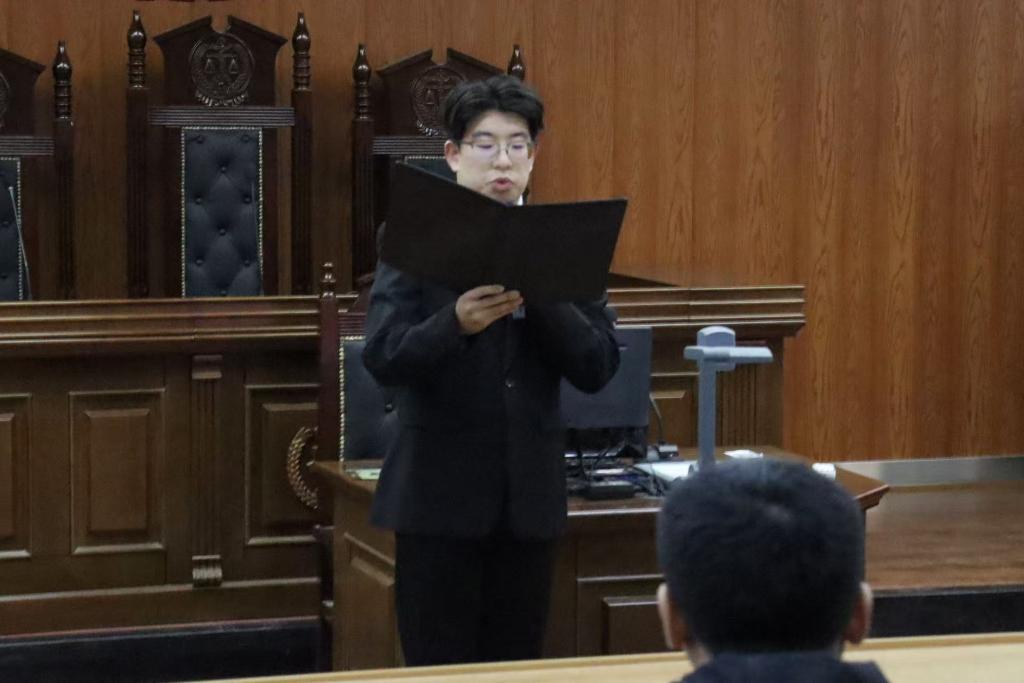 学生代表法学23班陈禹廷指出,作为未来的社会主义建设者和接班人,新时代大学生应当以青春之我,践行宪法精神,传承红色法治基因,续写新时代的法治篇章。