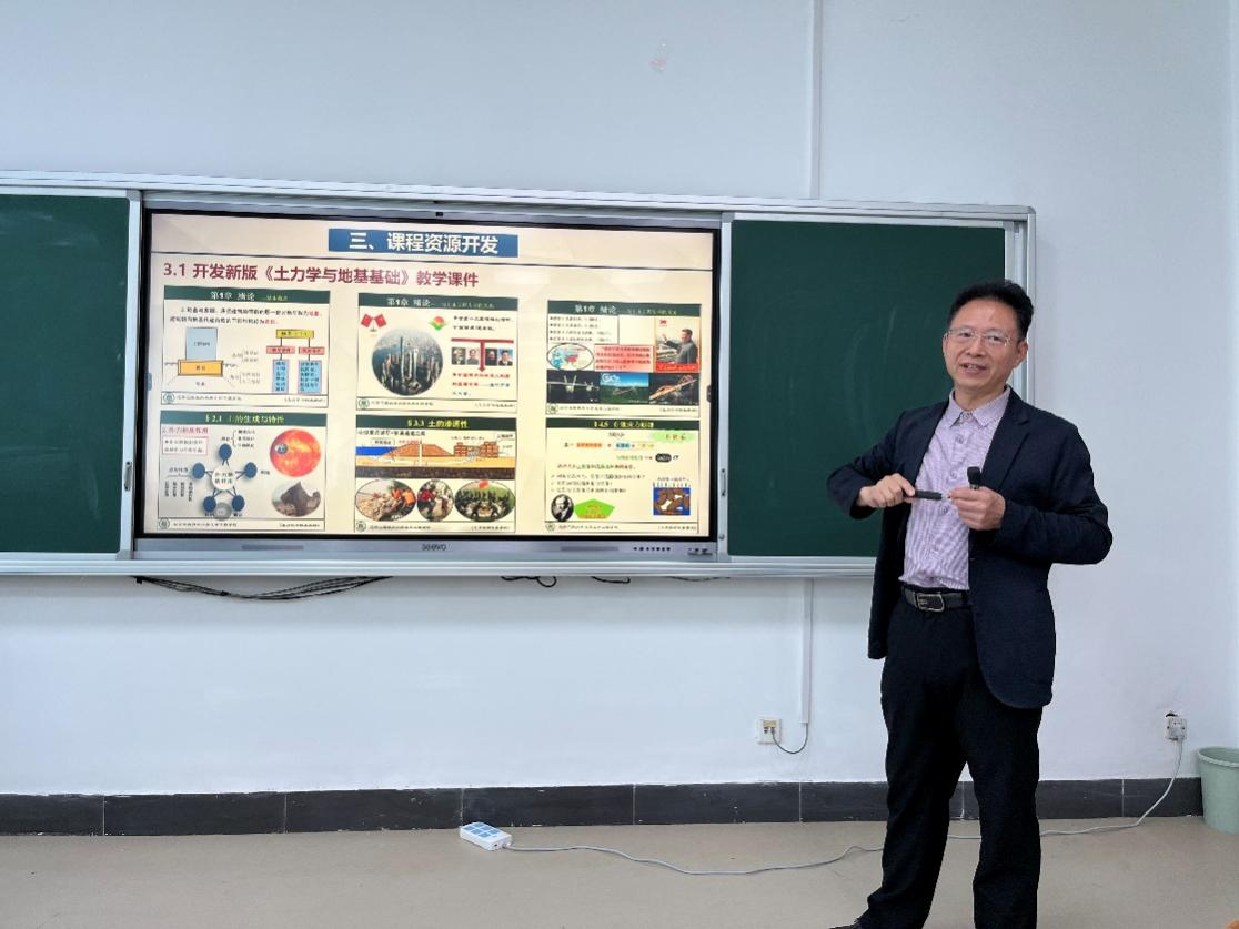 张向东结合自己多年课程建设经历,以国家一流课程土力学与地基基础为例,详细讲解了一流课程体系重构与优化、课程教与学模式改革、创新能力与实践能力塑造、课程成绩评价体系与评价方法等方面内容。报告条理清晰,内容具体,可借鉴性强。同时提出了课程建设持续性、OBE理念实施、因材施教、如何激发学生学习热情、教学效果提升、课程建设和科研反哺教学等问题的解决方案。报告结束后,张向东与部分教师进行了深入交流,得到了与会教师的一致认可。