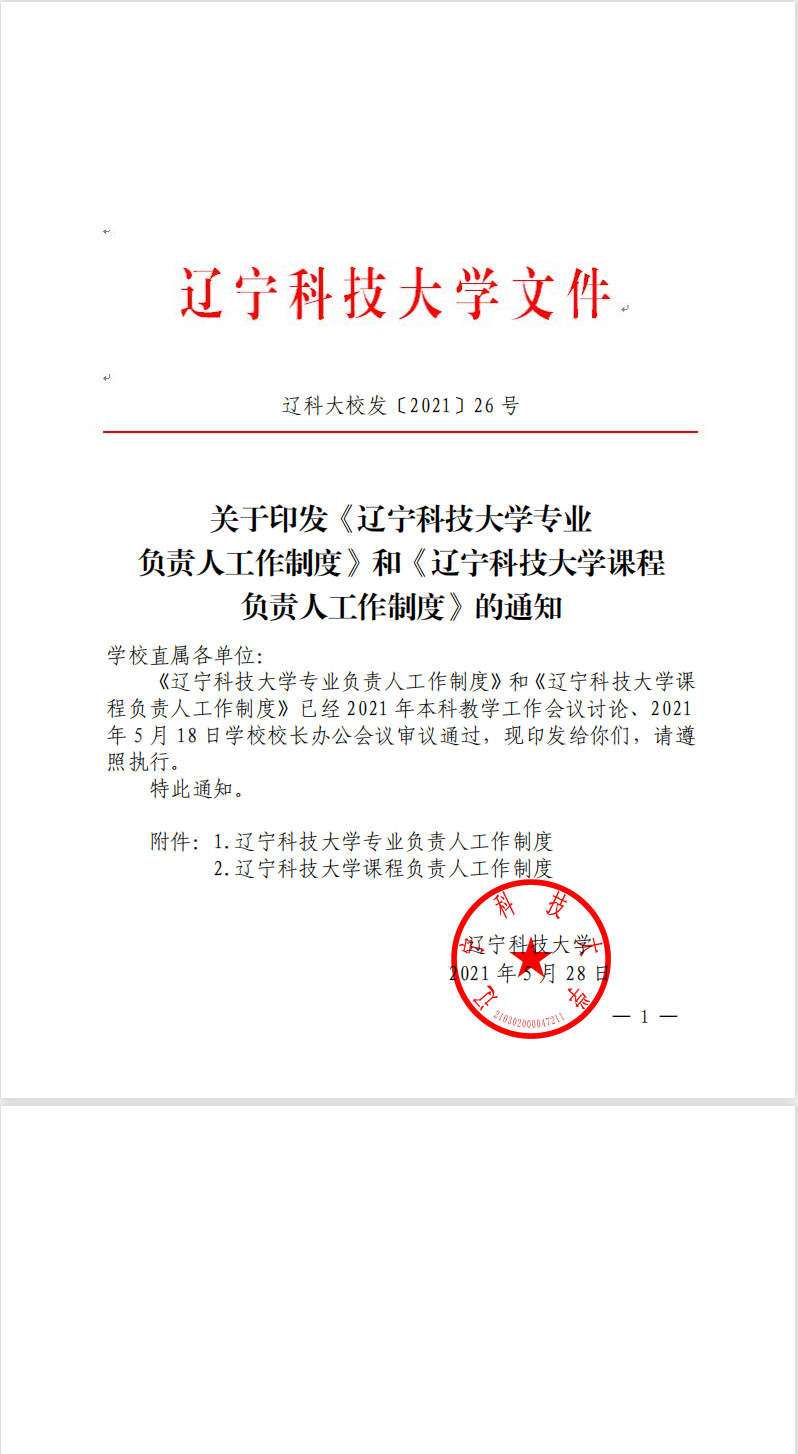 开云(中国)校发〔2021〕26号:关于印发《开云登陆入口专业负责人工作制度》和《开云登陆入口课程负责人工作制度》的通知