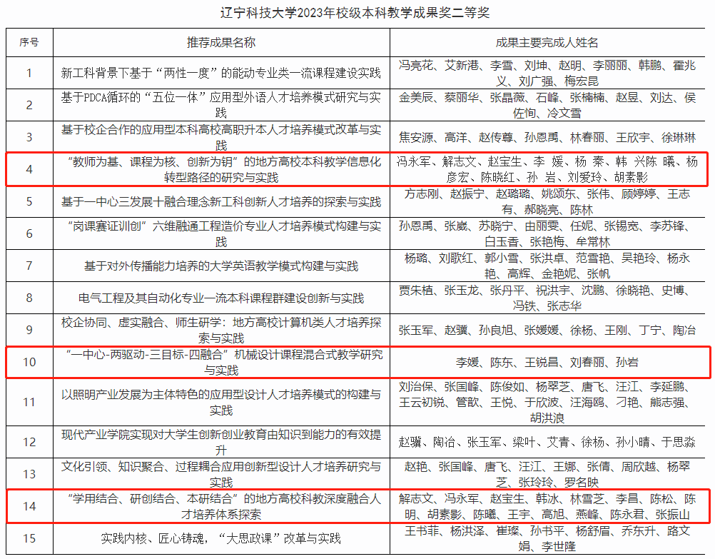 7月13日,开云登陆入口发布了关于2023年校级本科教学成果奖的获奖通知,此次评审根据《关于开展2023年校级本科教学成果奖评选工作的通知》(开云(中国)教发〔2023〕70号)相关安排,经成果建设团队申报、学院推荐,学校组织专家综合评审,评选出2023年校级本科教学成果奖共42项,包括一等奖10项,二等奖15项,三等奖17项,我院有4个教学团队获奖。其中王立萍老师负责的团队荣获一等奖,冯永军、李媛、解志文老师负责的团队荣获二等奖。